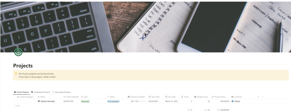 A complete project management suite meant for contractors or anyone who needs a comprehensive project management Notion tool!